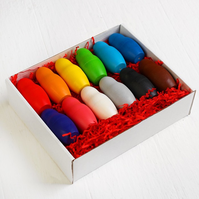 12 матрёшек высотой 6 см, диаметром 3 см;