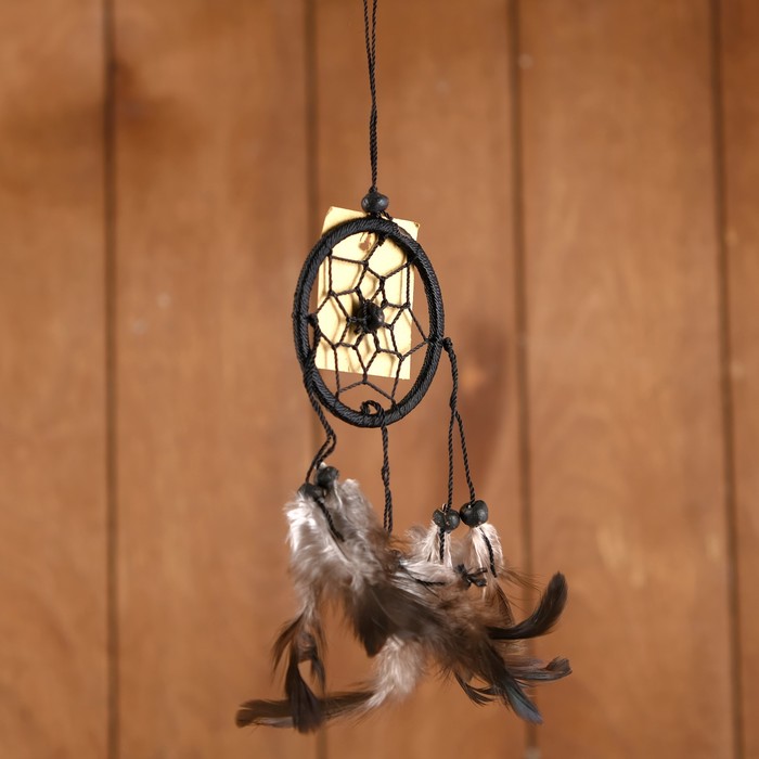 Ловец снов "Гармония" чёрный (коричневые перья) 6х0,5х20 см