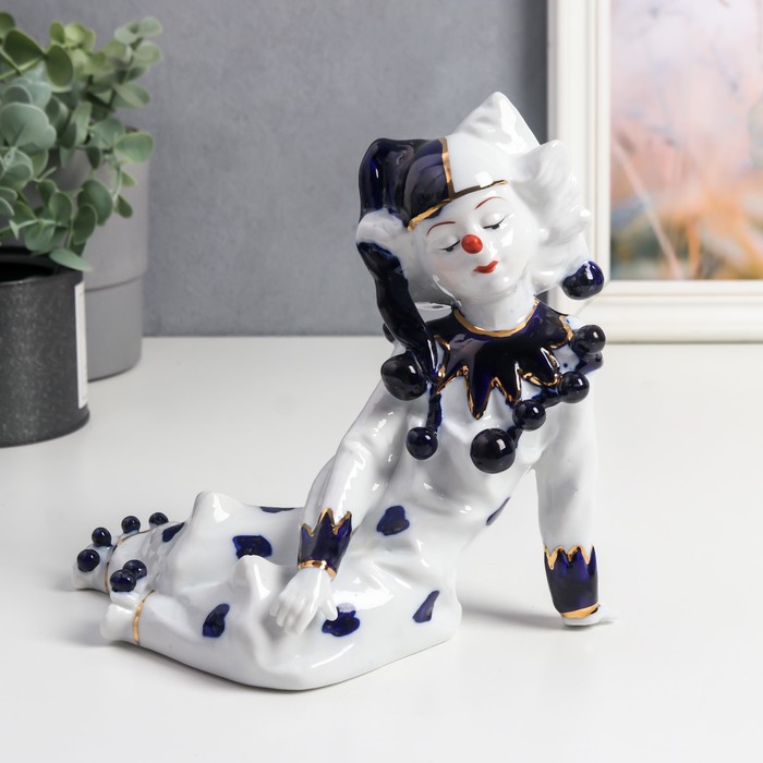 Эта керамическая фигурка клоуна в бело-синей гамме станет изысканным акцентом в интерьере или саду. Её выразительный дизайн и лаконичная цветовая палитра подчеркивают элегантность и добавляют пространству нотку загадочности. Высота 20,5 см делает её заметным элементом декора, который притягивает взгляды.
