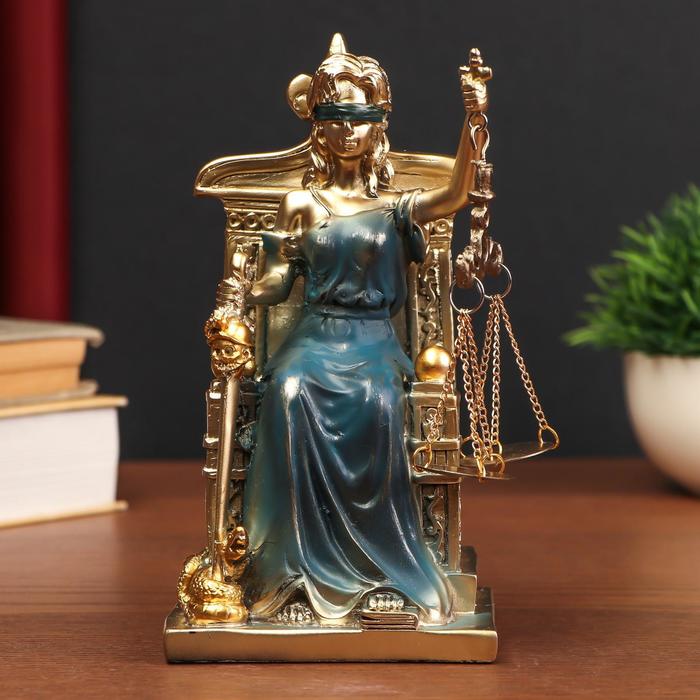 Сувенир полистоун "Богиня Фемида на троне" золотистый с синим 19х10х9 см - товар, который Вы можете приобрести в нашем интернет-магазине. Заказ могут оформить как юридические, так и физические лица. Бесплатная доставка по Астане, также, отправляем по РК.