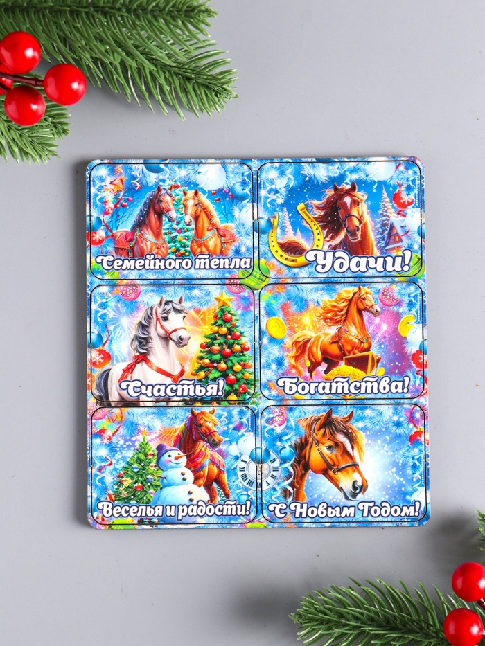 Набор магнитов на холодильник 6 шт. «Конь новогодний: Семейного тепла», 6×4.5 см - товар, который Вы можете приобрести в нашем интернет-магазине. Заказ могут оформить как юридические, так и физические лица. Бесплатная доставка по Астане, также, отправляем по РК.