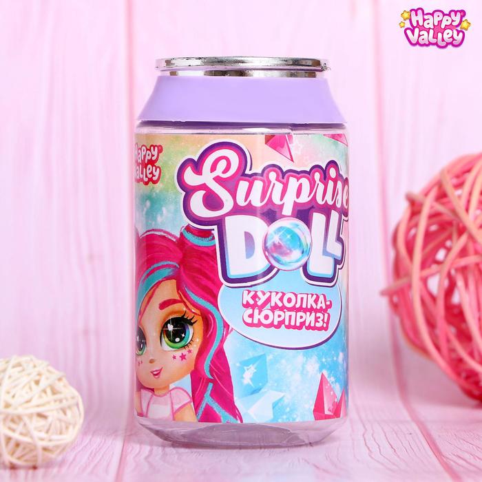 Surprise doll — это милая маленькая кукла в необычной упаковке в виде яркой банки. У неё яркие волосы, она одета в яркое платье и туфли. В комплекте с куклой есть аксессуары для малышки.