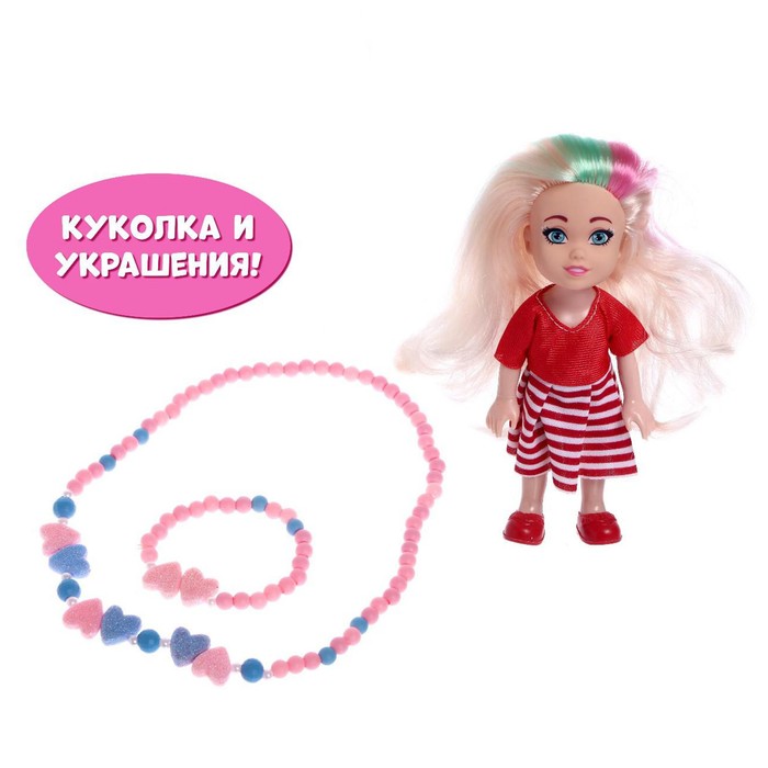 Кукле-малышке с длинными цветными волосами ребёнок сделает причёску. А сказочный образ маленькой модницы дополнят украшения из набора: ожерелье и браслет. Ребёнок с удовольствием будет использовать его и в садике, в гостях или на прогулке!