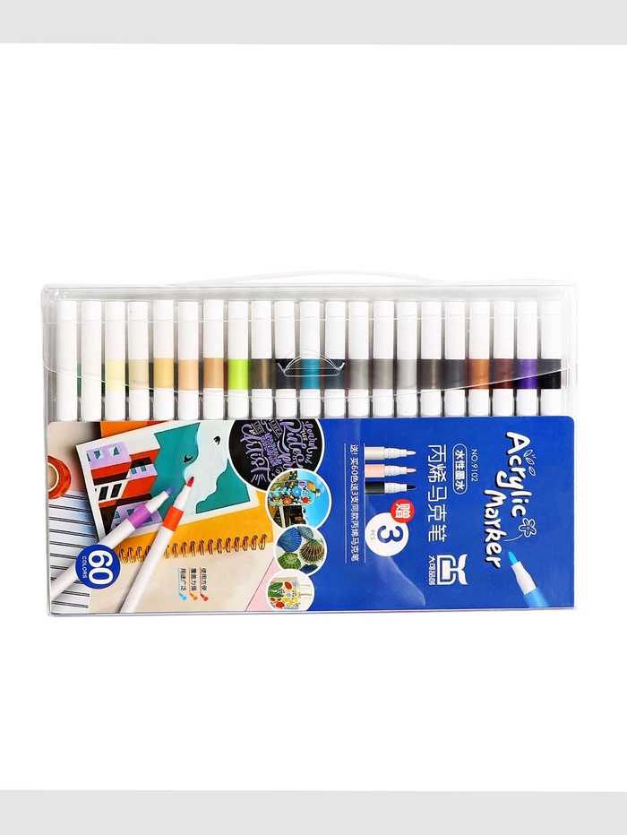 Набор из 60 акриловых маркеров — это максимальная палитра для профессионального и любительского творчества. Пулевидный наконечник обеспечивает точность линий, а акриловые чернила подходят для различных поверхностей. Упакованы в удобную пластиковую упаковку.