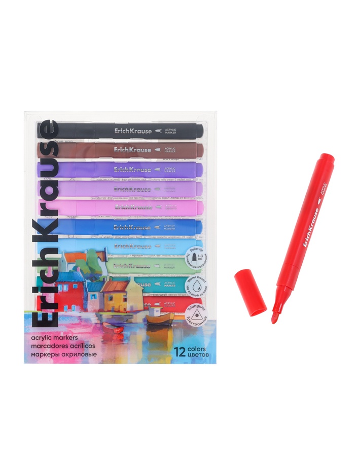 Акриловые маркеры на водной основе с пулевидным наконечником. Подходят для всех типов поверхностей: стекло, керамика, холст, бумага, пластик, дерево, камень. Идеальны для скетчинга и декорирования.
