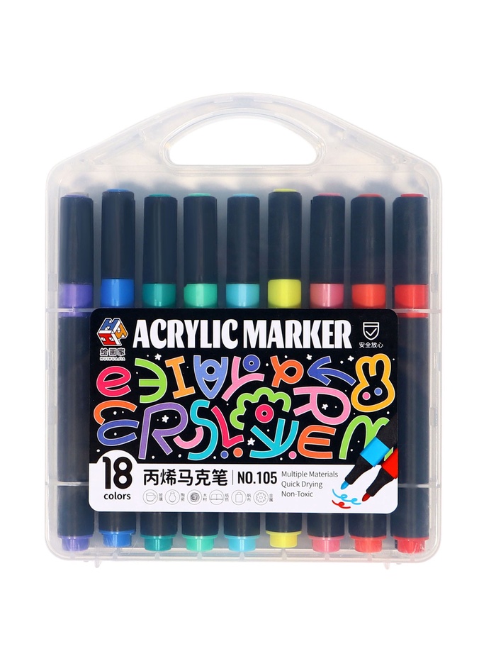 Набор маркеров акриловых, 18 цветов, в пластиковом пенале - товар, который Вы можете приобрести в нашем интернет-магазине. Заказ могут оформить как юридические, так и физические лица. Бесплатная доставка по Астане, также, отправляем по РК.