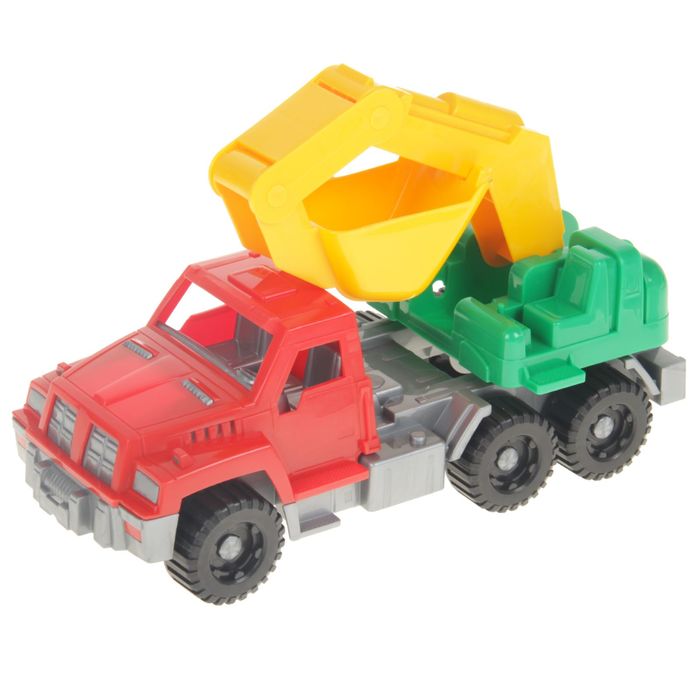 Экскаватор — незаменимая техника на любой стройке. Она оснащена широким ковшом с удобной ручкой для копания песка и мелких камушков. Такая игрушка подойдёт для развлечений дома и на улице.