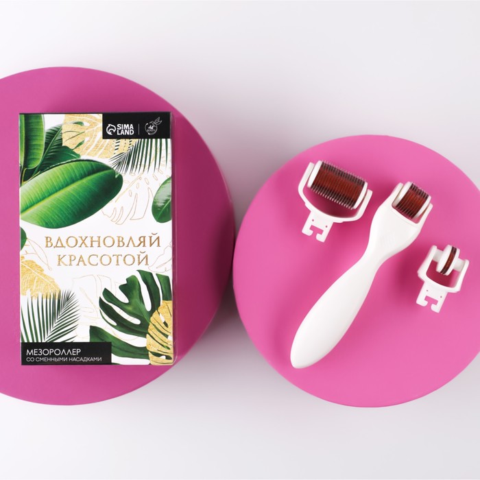 Мезороллер со сменными насадками для лица, головы и тела представляет собой валик с тончайшими иглами из стали.