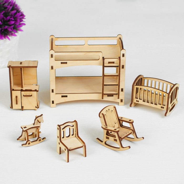 Набор деревянной мебели для кукол «Детская», 6 предметов, конструктор