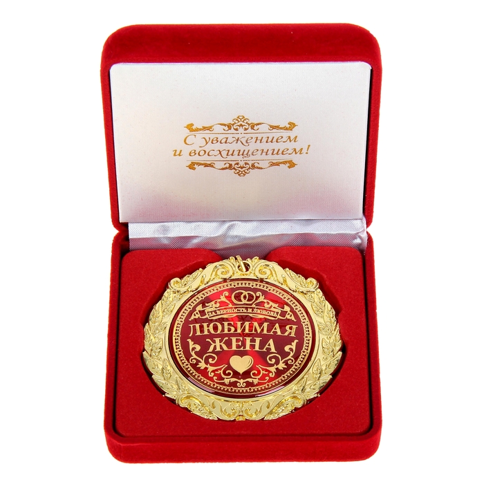 Создана формула идеального поздравления: классическая форма и праздничное содержание. Именно такой и является медаль в бархатной коробке «Любимая жена», d= 7 см.. Это отличная награда для самых достойных представителей своего времени. Эксклюзивный сувенир станет достойным украшением вечера и поможет создать незабываемую церемонию поздравления.