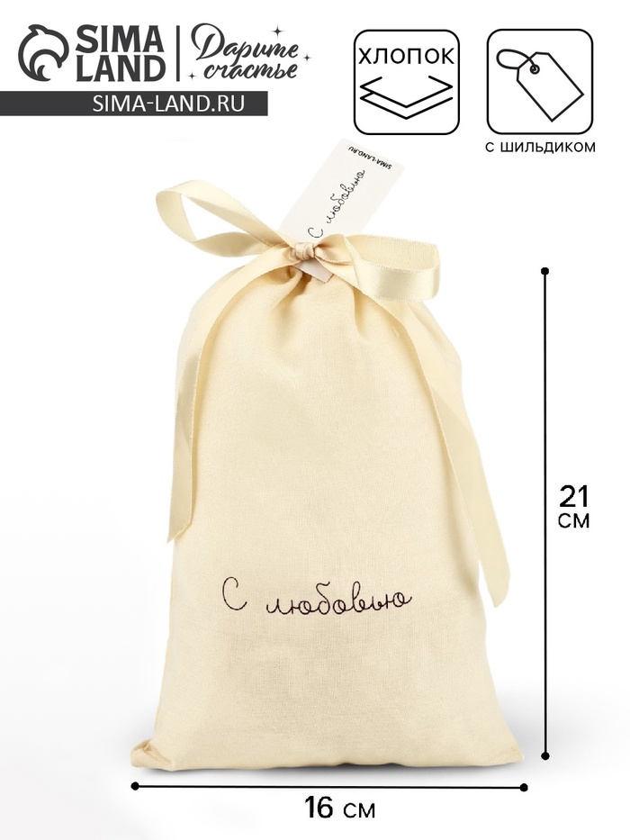 Мешочек подарочный из хлопка «С любовью», 16×24 см ± 1.5 см - товар, который Вы можете приобрести в нашем интернет-магазине. Заказ могут оформить как юридические, так и физические лица. Бесплатная доставка по Астане, также, отправляем по РК.