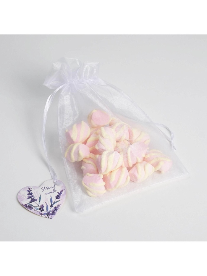Мешочек подарочный органза белый «Лаванда», с шильдиком, 16×24 см ± 1.5 см