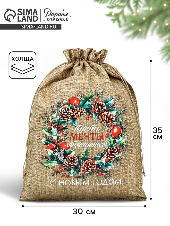 Мешок с термонаклейкой «Пусть мечты сбываются в Новом году», 30×40 см - товар, который Вы можете приобрести в нашем интернет-магазине. Заказ могут оформить как юридические, так и физические лица. Бесплатная доставка по Астане, также, отправляем по РК.