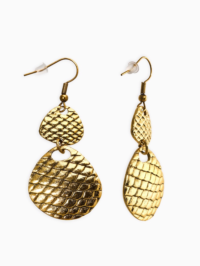 Обретите тайну морской стихии с этими превосходными серьгами-метал в стиле «Чешуя», окрашенных в благородный оттенок чернёного золота. Создавая впечатление живых чешуек, бережно укрывающих кожу, эти украшения будут вызывать восторг у всех, кому посчастливится увидеть их.