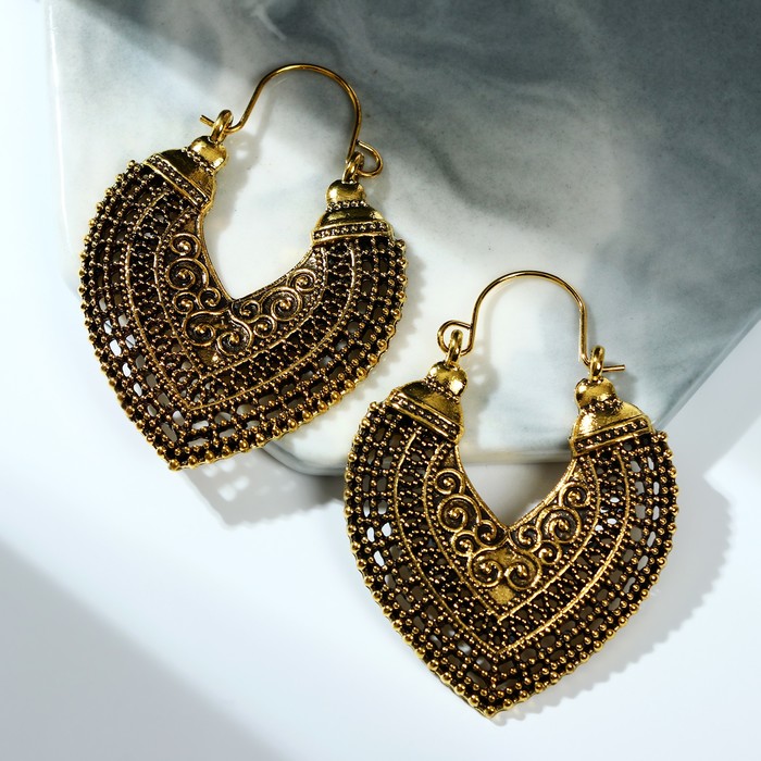Серьги металл «Восток» сердце, цвет чернёное золото - товар, который Вы можете приобрести в нашем интернет-магазине. Заказ могут оформить как юридические, так и физические лица. Бесплатная доставка по Астане, также, отправляем по РК.