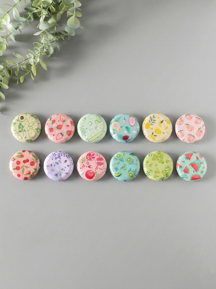 Этот набор из 12 мини-шкатулок — яркое и практичное решение для хранения мелких драгоценностей. Каждая круглая коробочка украшена сочным рисунком фруктов или овощей, создавая настроение летнего сада в вашем интерьере. Компактный размер делает набор идеальным для организации колец, серёг, брошей или других миниатюрных сокровищ на туалетном столике, в комоде или дорожной косметичке.