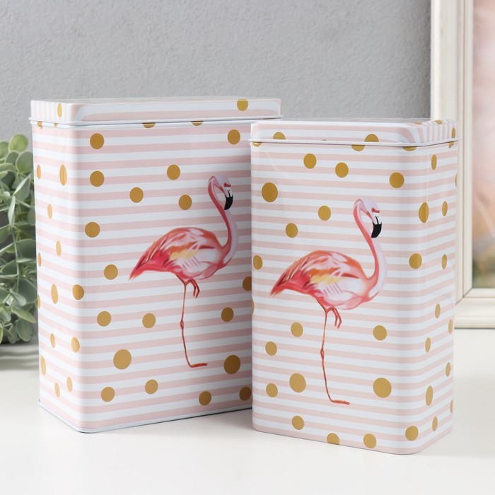 Набор шкатулок для хранения мелочей, украшений «Прямоугольная. Фламинго и золотой горох», 2 шт., металл - товар, который Вы можете приобрести в нашем интернет-магазине. Заказ могут оформить как юридические, так и физические лица. Бесплатная доставка по Астане, также, отправляем по РК.