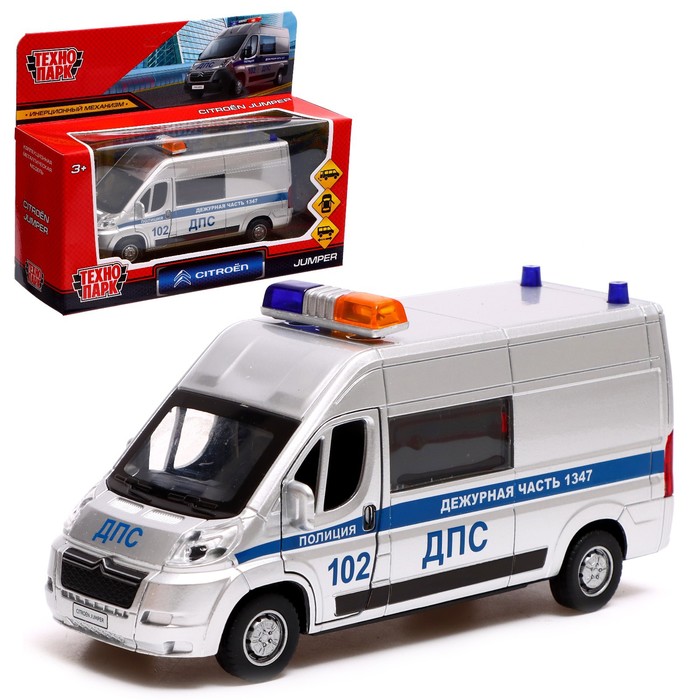 Машина металлическая «Citroen Jumper полиция», 14 см, двери, багажник, инерция, цвет серебро