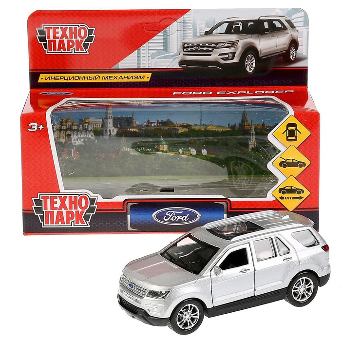 Машина металлическая Ford Explorer, 12 см, открывающиеся двери, инерционная, цвет серебристый