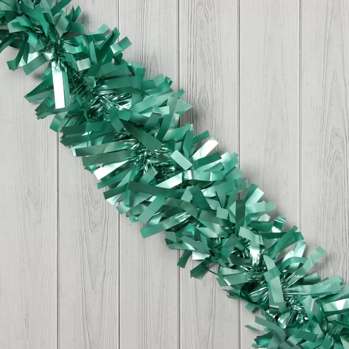 Зелёная новогодняя мишура длиной 200 см и диаметром 9 см создаёт праздничное сияние и оживляет интерьер в духе советской традиции с современным фьюжн акцентом. Её насыщенный цвет и текстура подчёркивают атмосферу зимнего торжества, добавляя объём и блеск украшениям.