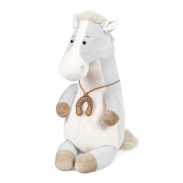Мягкий конь Краш — это очаровательный персонаж, который станет любимым другом для вашего ребёнка или стильным аксессуаром в интерьере. Его серый мех и добрый образ создают атмосферу тепла и уюта, делая его идеальным спутником для игр дома или в качестве декора.