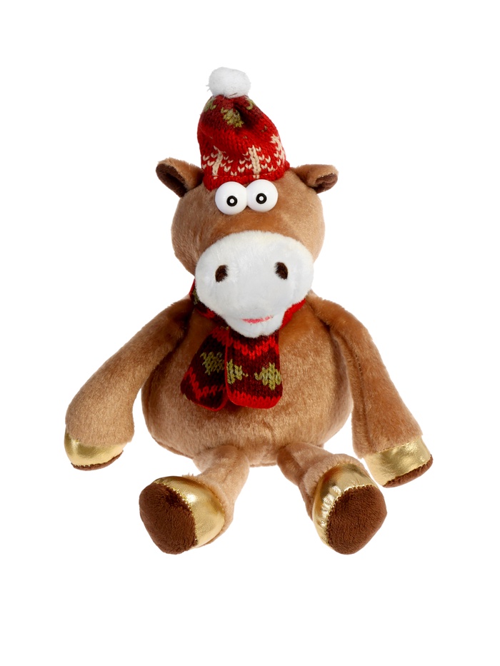 Мягкая игрушка «Зимняя лошадка» — тёплый и праздничный персонаж, который создаёт уют и поднимает настроение. Яркая шапочка, шарфик и мягкая плюшевая поверхность делают её идеальным украшением зимнего интерьера и приятным подарком для любого возраста.