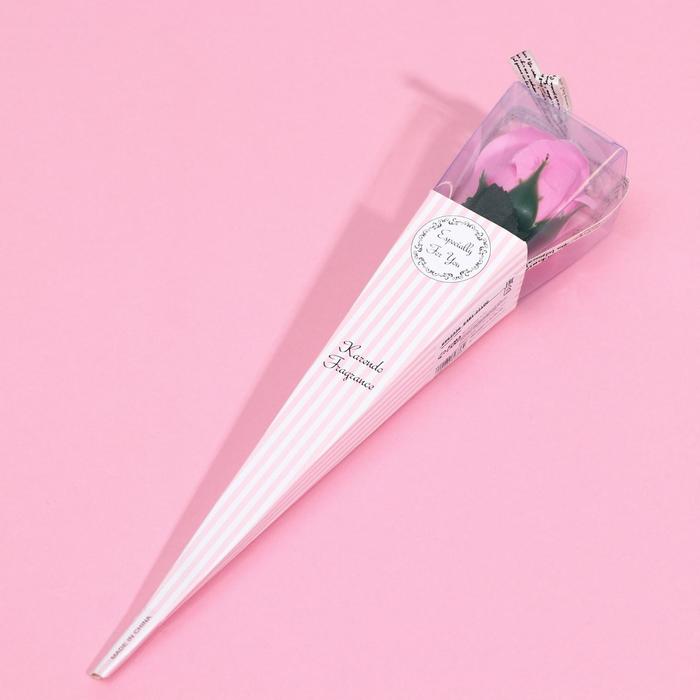 Мыльная роза, розовая на стебле в картоне, 1 шт.