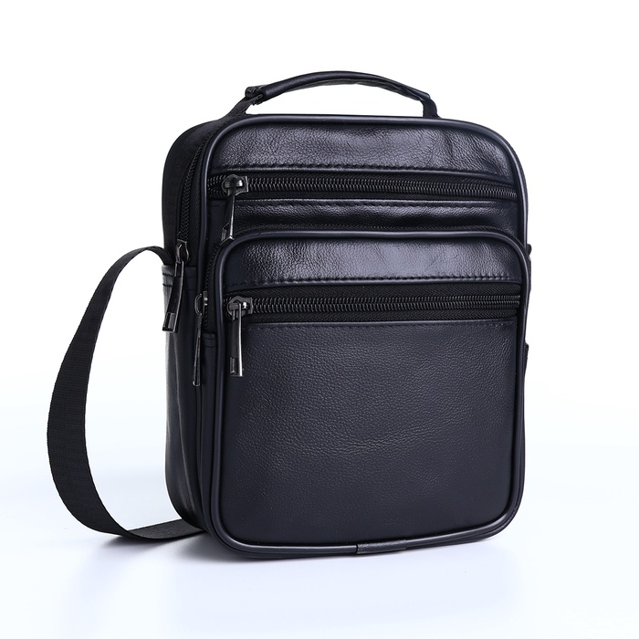 Черная сумка для мужчин с четырьмя карманами — отличный выбор для тех, кто ценит стиль, практичность и безупречный внешний вид. Изготовленная из прессованной кожи, эта компактная сумка станет надежным спутником в повседневной жизни.