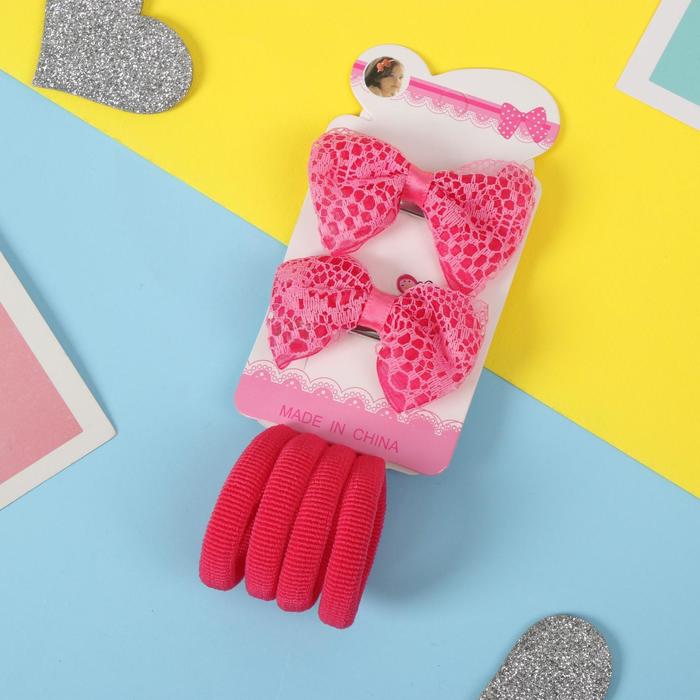 Набор для волос «Лада», 4 резинки, 2 зажима, кружево, розовый - товар, который Вы можете приобрести в нашем интернет-магазине. Заказ могут оформить как юридические, так и физические лица. Бесплатная доставка по Астане, также, отправляем по РК.