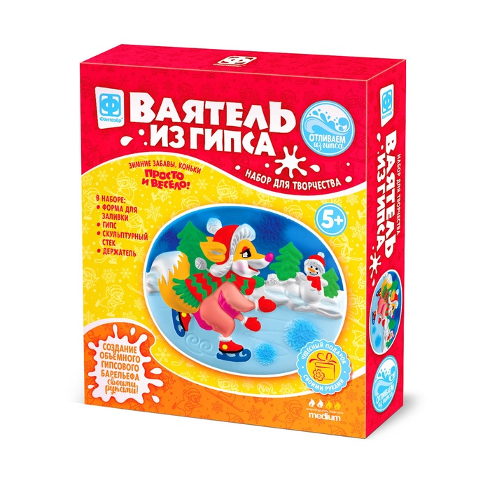 Ваятель панно для раскрашивания «Зимние забавы. Коньки» поможет малышу создать своими руками необычный сувенир! Смешайте специальную смесь с водой и вылейте её в формочку, а после того, как она застынет, раскрасьте её любыми красками.