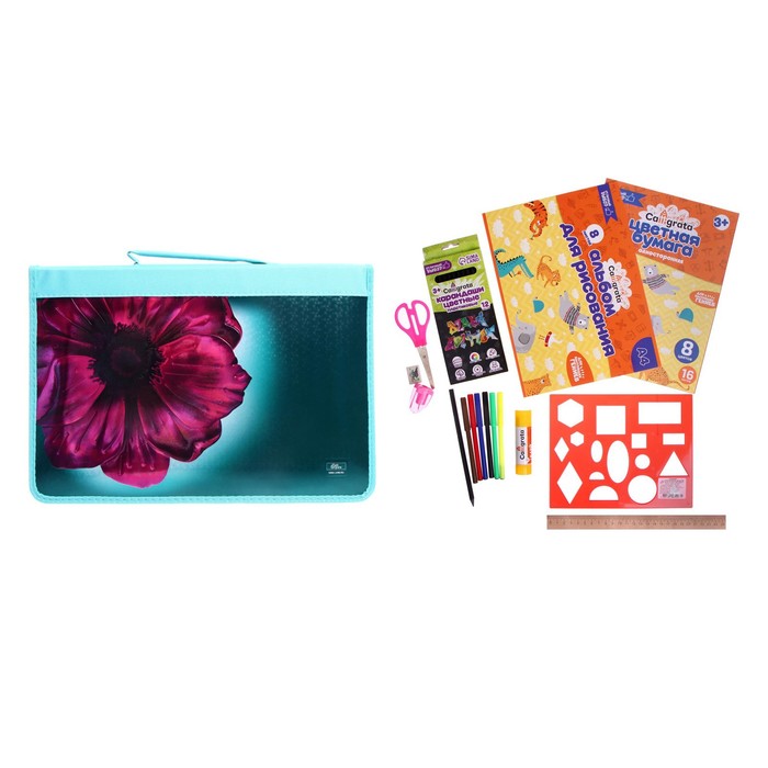 Папка-пенал для труда А4, 340 х 240 х 30 мм, с ручкой, молния вокруг, наполнение 27 предметов, Calligrata, "Цветок", ламинированный картон (объемный 3D-рисунок с эффектом металлика) - товар, который Вы можете приобрести в нашем интернет-магазине. Заказ могут оформить как юридические, так и физические лица. Бесплатная доставка по Астане, также, отправляем по РК.