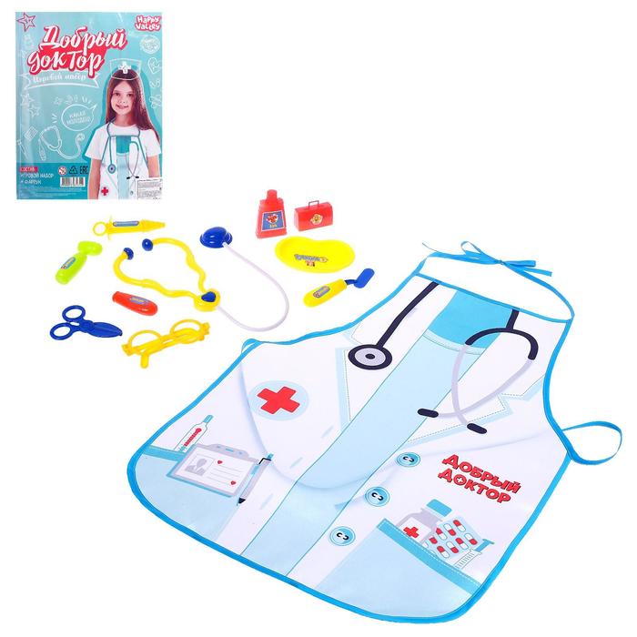 Чадо с удовольствием наденет фартук, очки и фонендоскоп, возьмёт в руки градусник и пойдёт на осмотр пациентов. Вне сомнения, теперь все куклы и игрушки малютки всегда будут здоровы.