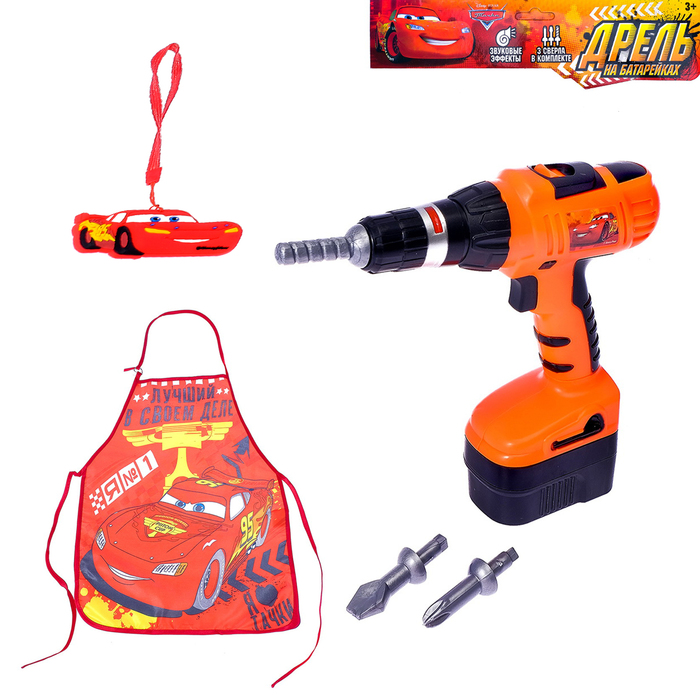 Шуруповерт «Юный мастер», Тачки, 3 насадки, работает от батареек