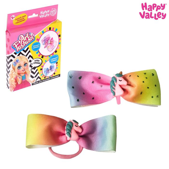 В комплекте есть всё необходимое для этого: лента, основы для заколок, резинки для волос, бантики и фигурки для украшения, гель с блёстками.