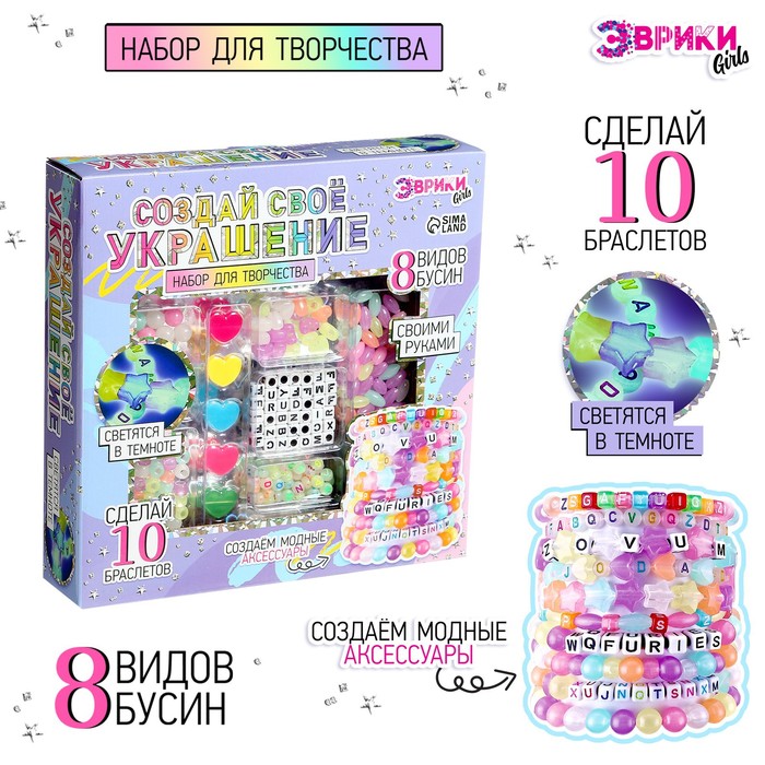 Создавайте оригинальные образы, изюминкой которых станут стильные украшения из бусин, светящихся в темноте! Яркие бусины разных цветов и размеров позволят воплотить самые разные идеи. А бусины с буквами помогут сделать твои украшения не только модными, но и отражающими ваш уникальный внутренний мир! Вдохновляйтесь, фантазируйте, творите!