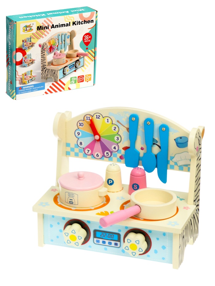 Деревянная мини-кухня — это компактный игровой модуль, который помогает ребёнку примерить роль повара, развивает воображение и поддерживает интерес к сюжетным играм. Ребёнок может «готовить» как взрослые: ставить кастрюлю на конфорку, перемешивать ложкой, открывать крышку, пользоваться лопаткой, сковородой и «часами»-таймером.