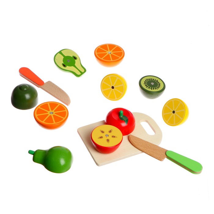 Все предметы изготовлены из экологичного материала — дерева, покрыты нетоксичными красками, а края тщательно обработаны. Каждый плод разделён на 2 части и скреплён небольшими магнитиками в середине. Чтобы «разрезать» фрукт, достаточно провести деревянным ножом по линии и разъединить магнитики. Играть с таким набором безопасно.