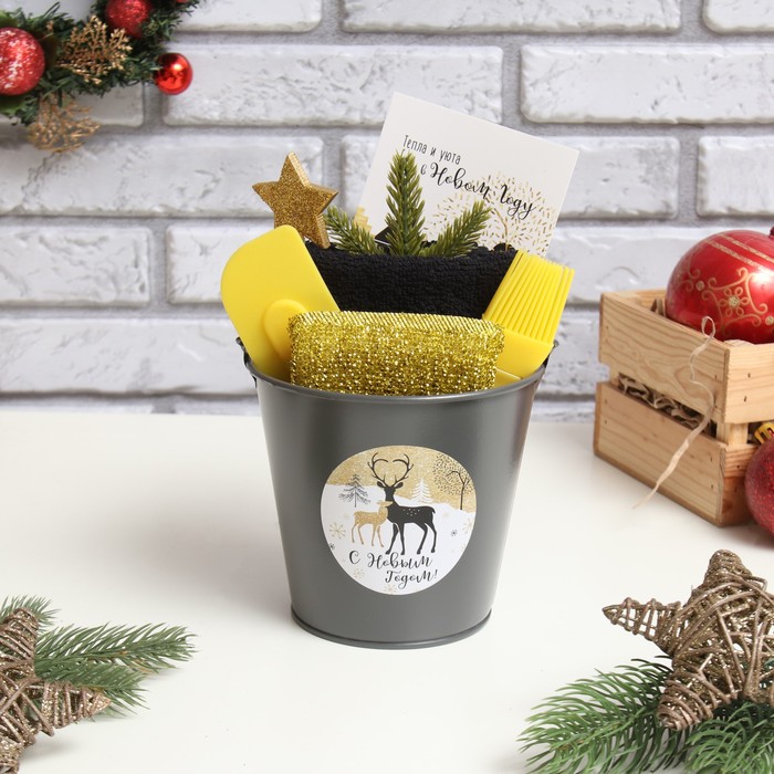 | Составляющие набора | Кулинарная кисть, Декор, Губка для мытья посуды, Ведёрко, Кухонная лопатка, Открытка, Полотенце |