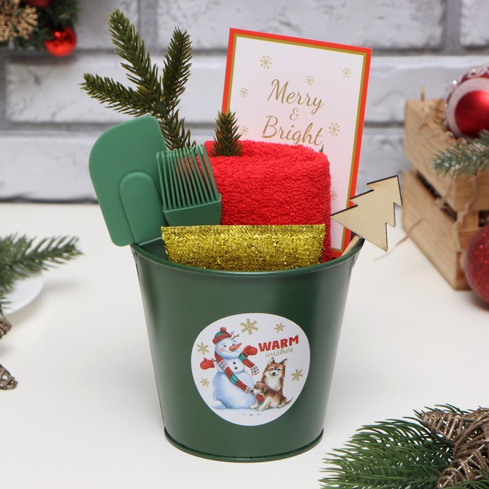 | Составляющие набора | Губка для мытья посуды, Декор, Кулинарная кисть, Открытка, Ведёрко, Полотенце, Кухонная лопатка |