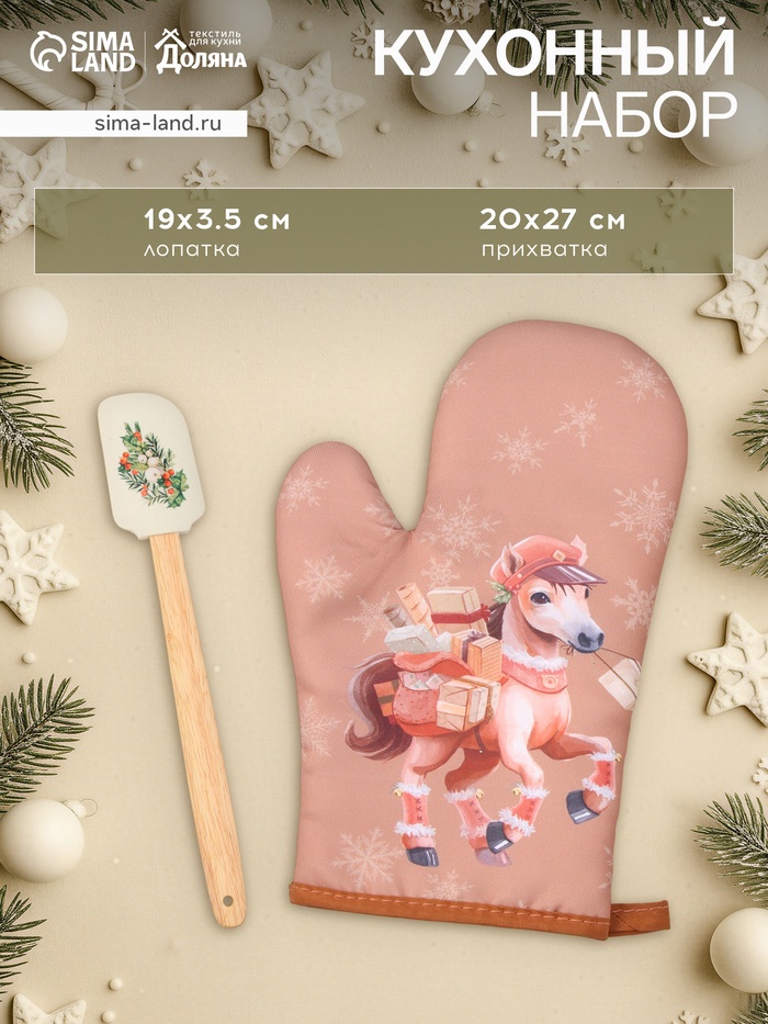 Хлопковая варежка надёжно защищает руки от горячих поверхностей, а силиконовая лопатка не повреждает покрытие посуды. За комплектом легко ухаживать: стирка при 40°C в деликатном режиме надолго сохранит внешний вид изделий. Этот набор объединяет в себе функциональность кухонных аксессуаров и тёплую эстетику зимнего праздника, становясь символом домашнего тепла.