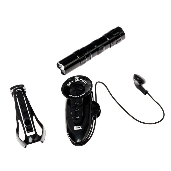 Шпионская игрушка «Набор для слежки», подслушивающее устройство и фонарик в комплекте, работает от батареек