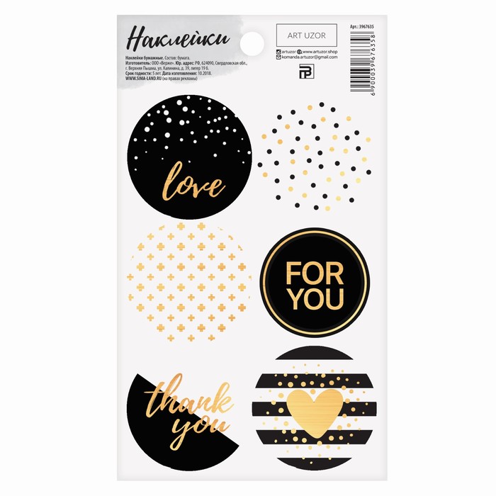 Наклейки на подарки «Золото», 9 × 16 см