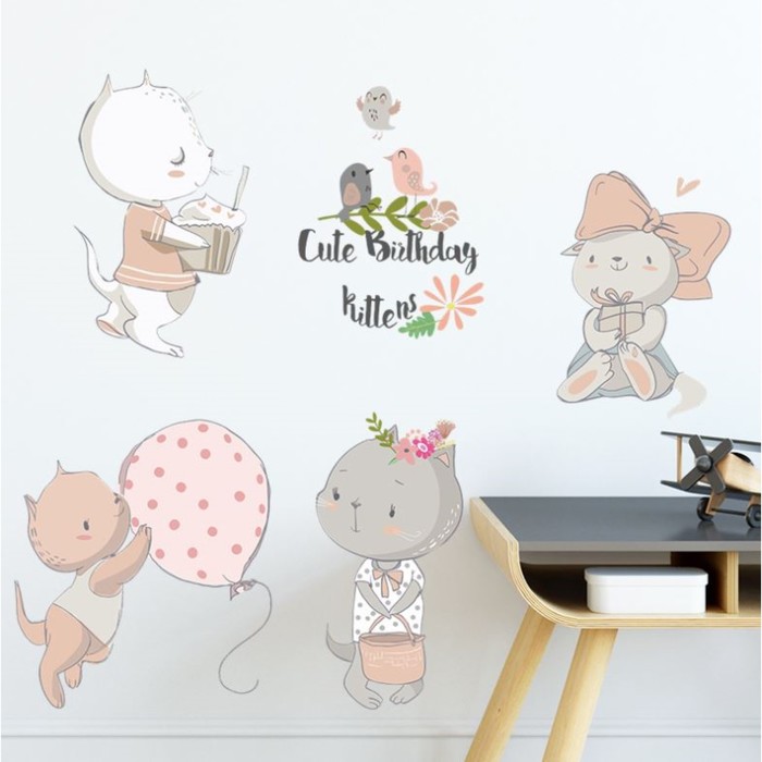 Наклейка пластик интерьерная цветная "Милые котятки" 30х90 см