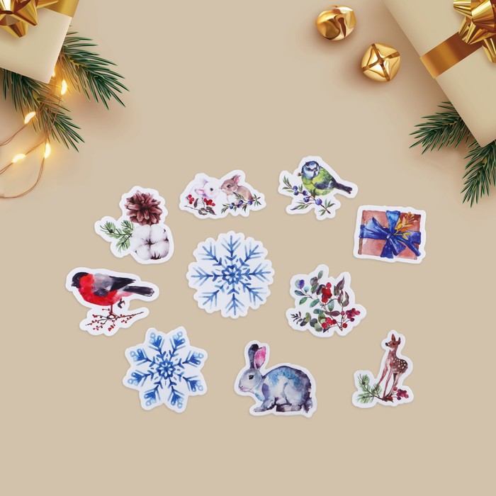 Набор виниловых стикеров на окна «Зимний лес», многоразовые, 10 × 10 см