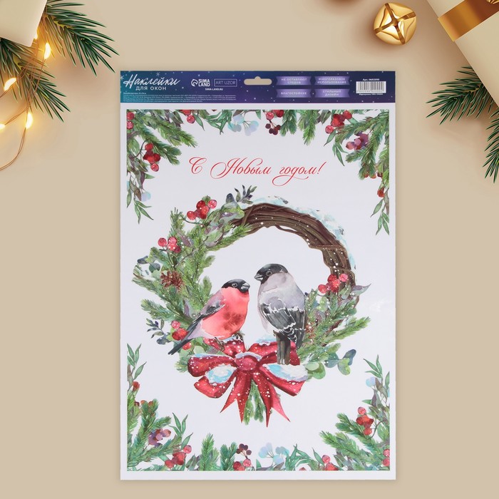 Наклейка для окон «С Новым годом», снегири, многоразовая, 33 х 50 см - товар, который Вы можете приобрести в нашем интернет-магазине. Заказ могут оформить как юридические, так и физические лица. Бесплатная доставка по Астане, также, отправляем по РК.