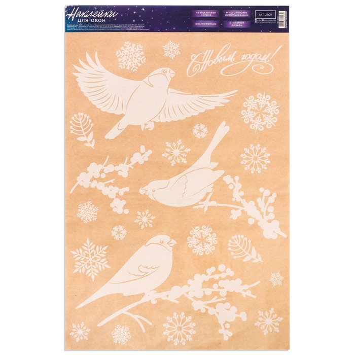 Наклейки новогодние на окна «Зимние птички» , многоразовые, 33 х 50 см - товар, который Вы можете приобрести в нашем интернет-магазине. Заказ могут оформить как юридические, так и физические лица. Бесплатная доставка по Астане, также, отправляем по РК.
