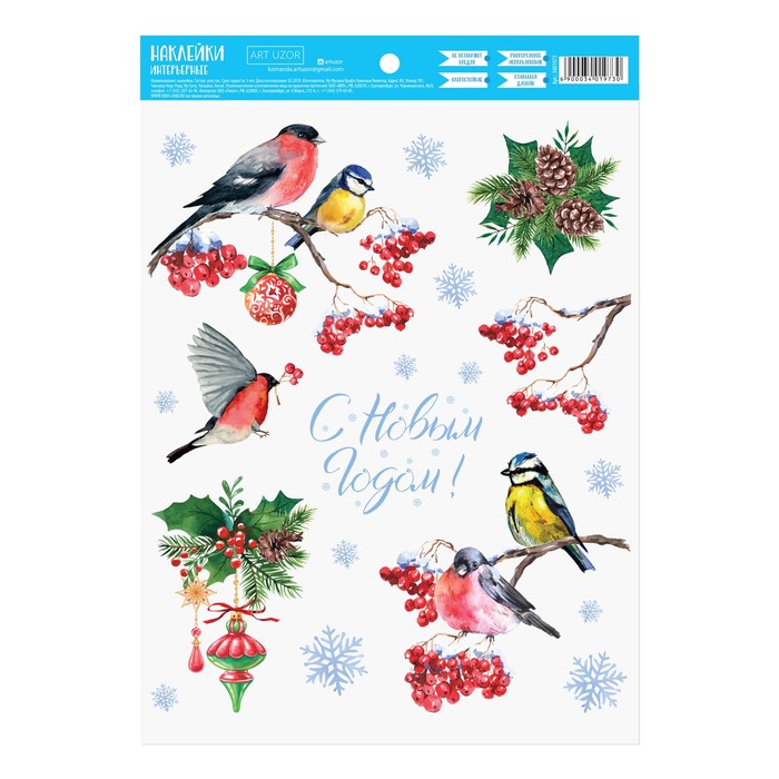 Наклейка интерьерная «Зимние птички», 21х29.7 см - товар, который Вы можете приобрести в нашем интернет-магазине. Заказ могут оформить как юридические, так и физические лица. Бесплатная доставка по Астане, также, отправляем по РК.