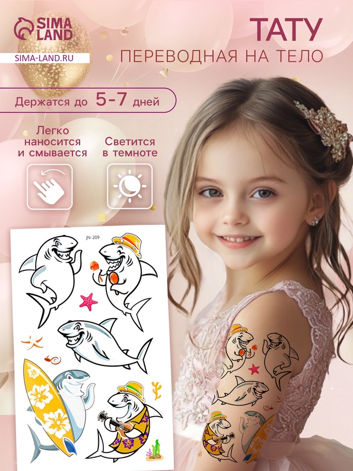 Переводные тату на тело цветные светящаяся «Акулы», 12×7.5 см, МИКС - товар, который Вы можете приобрести в нашем интернет-магазине. Заказ могут оформить как юридические, так и физические лица. Бесплатная доставка по Астане, также, отправляем по РК.