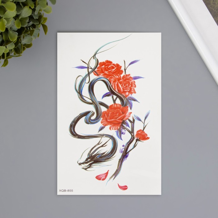 Переводная тату на тело цветная «Китайский дракон с розами», 11.4×21 см - товар, который Вы можете приобрести в нашем интернет-магазине. Заказ могут оформить как юридические, так и физические лица. Бесплатная доставка по Астане, также, отправляем по РК.