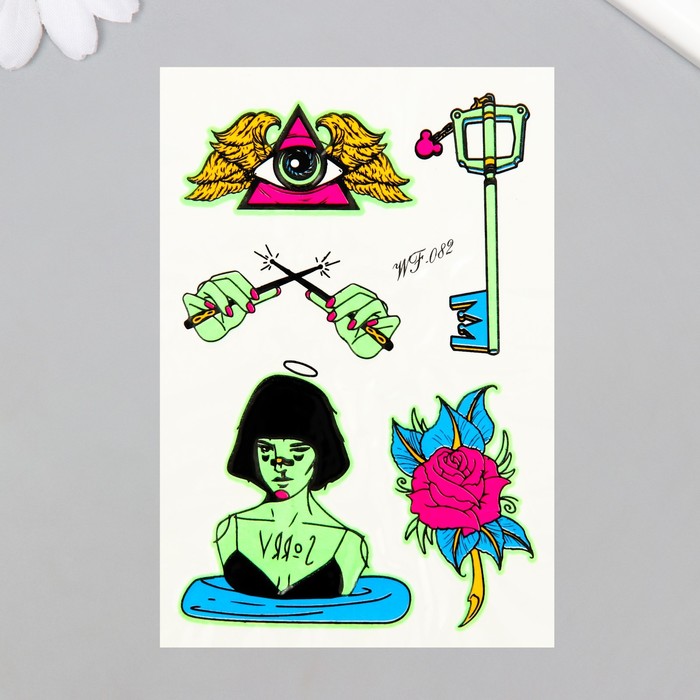 Добавьте волшебство в ваш образ! Переводные светящиеся татуировки – стильный аксессуар для поклонников тайн и конспирологии. Эти цветные наклейки на тело идеально украсят вас на вечеринках и сделают ваш образ незабываемым.